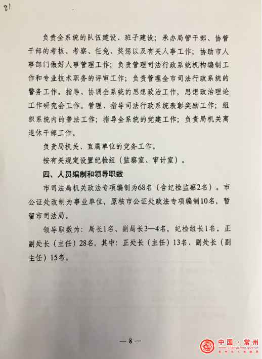 | 内容概述:对市司法局职能调整、主要职责、内设机构、人员编制和领导职数作出规定 |