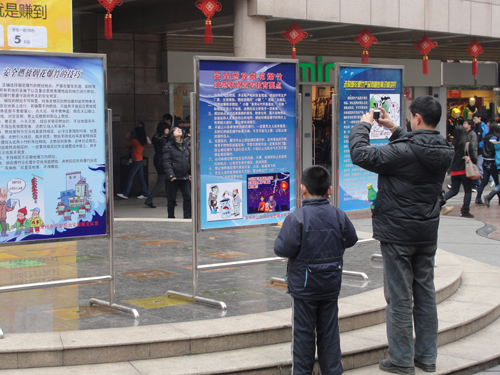 为确保市民过一个安全祥和的春节,根据省厅通知精神和烟花爆竹百日会战要求,2月8日下午,市公安局治安支队在南大街步行街中心广场举行了烟花爆竹安全文明燃放专题宣传活动。活动通过放置展板、接受咨询、发放宣传资料等形式,现场教授群众安全文明燃放烟花爆竹的技巧,宣传明确春节开禁燃放的区域和时间,取得了良好的社会效果。