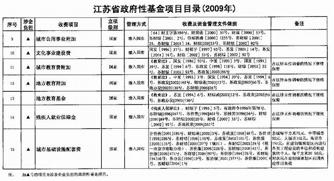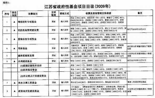 附件:江苏省财政厅关于公布江苏省政府性基金项目目录(2009年)的通知