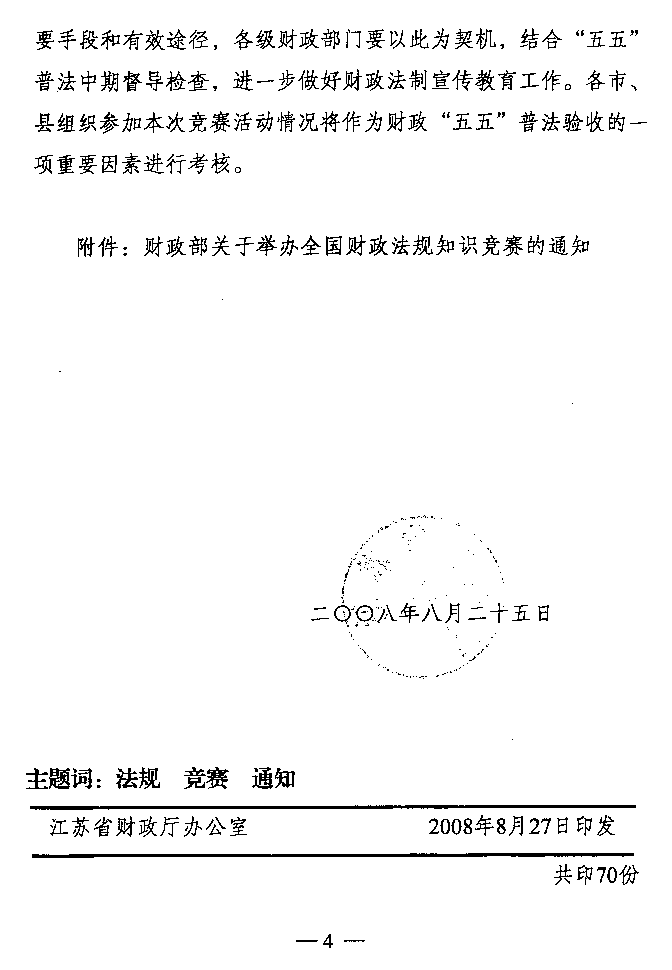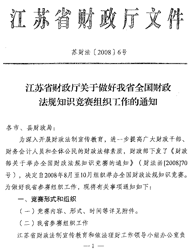 附件:江苏省财政厅关于做好我省全国财政法规知识竞赛组织工作的通知 澳门网络十大博彩公司财政局