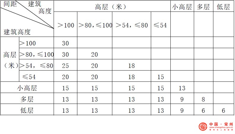第八条 住宅建筑的间距在满足日照要求的前提下,最小间距应符合下表要求: