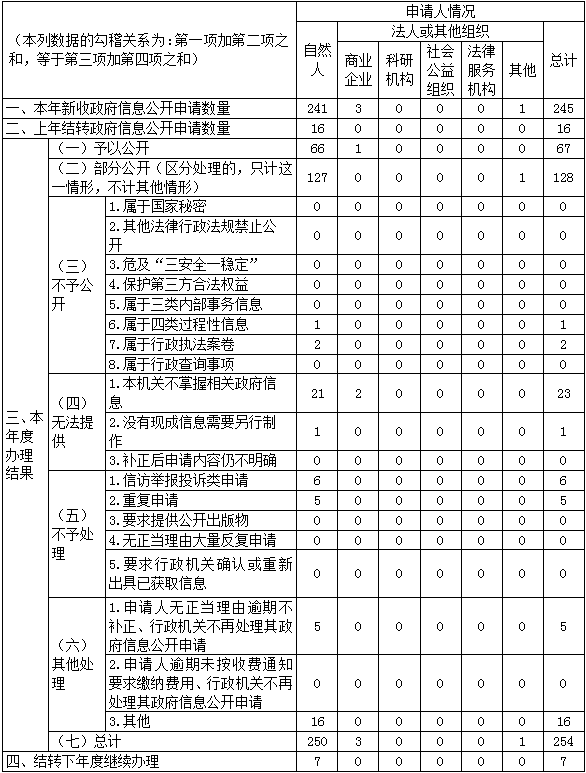 三、收到和处理政府信息公开申请情况