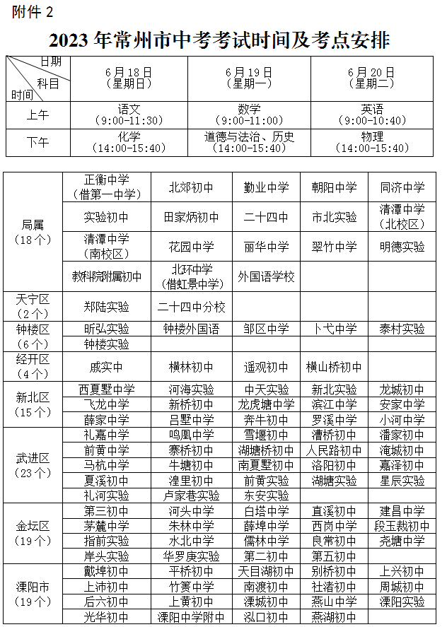 2.2023年网络十大博彩公司中考考试时间及考点安排