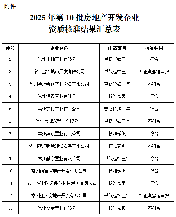 根据《中华人民共和国城市房地产管理法》《城市房地产开发经营管理条例》(国务院令第248号)和《房地产开发企业资质管理规定》(部令第54号)等法规以及有关文件规定,现将我局核准的2025年第10批房地产开发企业资质结果予以公告。