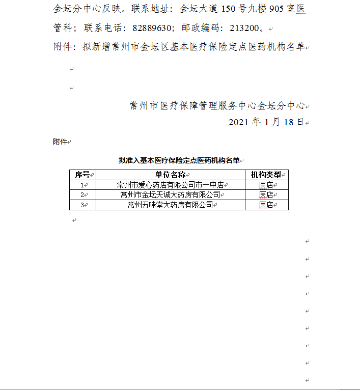 澳门网络十大博彩公司金坛区2021年拟新增基本医疗保险定点医药机构名单公示(一)