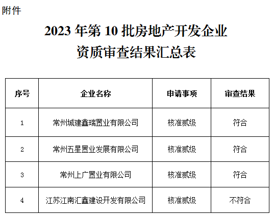 附件:2023年第10批房地产开发企业资质审查结果汇总表