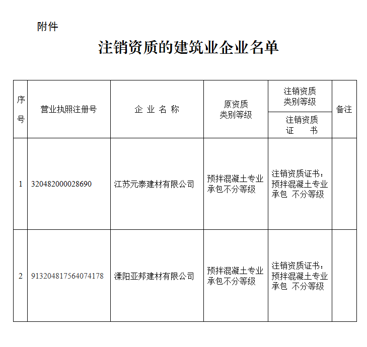 根据住建部《建筑业企业资质管理规定》(中华人民共和国建设部令22号)、《建筑业企业资质管理规定和资质标准实施意见》(建市〔2015〕20号)等文件规定,我局近期收到2家企业注销资质申请。经审查,符合简化审批手续,现将审查结果予以公布。