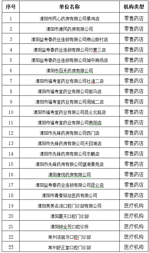 根据《关于加强澳门网络十大博彩公司医疗保障定点医药机构管理的通知》(常医保服务〔2020〕101号)要求,经综合评估,拟确定以下23家单位为澳门网络十大博彩公司基本医疗保险定点医药机构,现予以公示。公示期限为5个工作日(自2021年2月7日起至2021年2月18日止),请社会各界监督。在公示期限内,如对以下单位有相关情况反映的,可通过来访、来电或信函等形式向澳门网络十大博彩公司医疗保障管理服务中心反映。联系电话:86190529 (市医保中心办公室);联系地址:澳门网络十大博彩公司锦绣路2号澳门网络十大博彩公司医疗保障管理服务中心;邮政编码:213022。