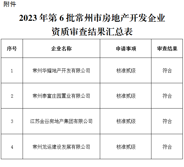 根据《中华人民共和国城市房地产管理法》《城市房地产开发经营管理条例》(国务院令第248号)、《住房和城乡建设部关于修改<房地产开发企业资质管理规定>的决定》(住建部令第54号)等法律法规和江苏省关于房地产开发企业资质管理的有关规定,我局对近期4家申请房地产开发企业资质材料进行了审查,现将审查结果予以公布。