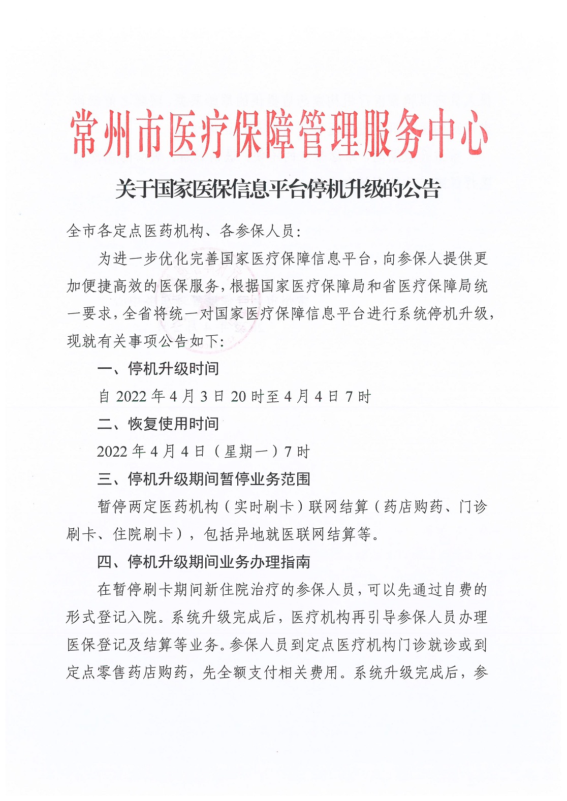 关于国家医保信息平台停机升级的公告