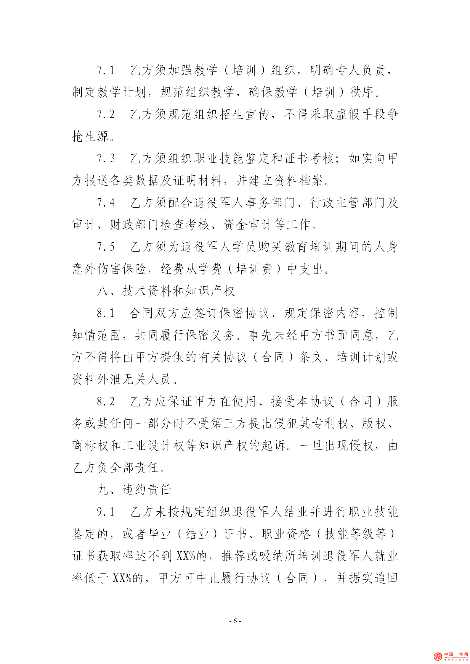 培训机构签约后,作为澳门网络十大博彩公司退役军人就业创业培训合作机构,按要求接受澳门网络十大博彩公司退役军人事务部门的业务指导和监督管理,配合澳门网络十大博彩公司退役军人事务部门委托的第三方机构开展培训效果评估。主动规范招生行为,建立健全教学管理制度,加强管理,防范和化解各类安全事故风险。按规定确定培训收费标准及享受退役军人培训专项补贴,并负责参与就业技能培训的退役军人学员推荐就业。