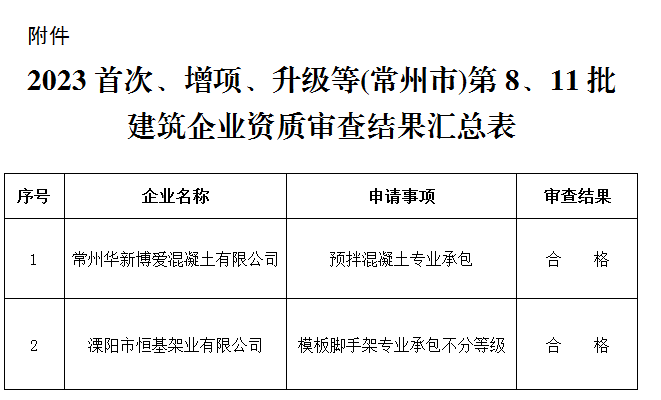 附件:2023年第8、11批澳门网络十大博彩公司建筑业企业资质审查结果汇总表