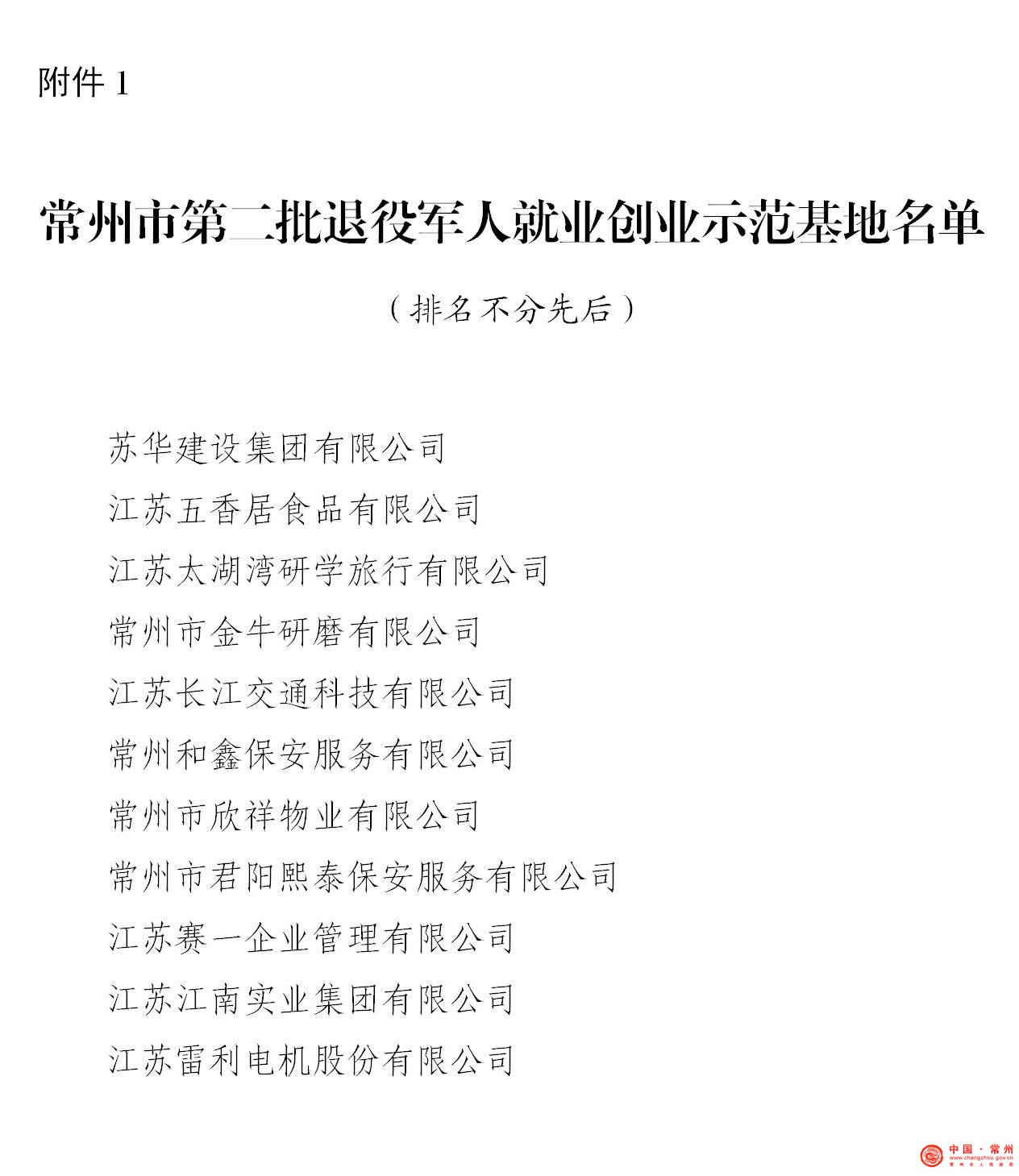 为助力“532”发展战略,切实加强我市退役军人就业创业工作,更好地发挥其在服务经济社会发展和促进富民增收中的重要作用,引导社会各界积极扶持退役军人就业创业,根据网络十大博彩公司退役军人就业创业示范基地认定和管理办法,在单位自主申报、辖市(区)推荐、市级综合评定的基础上,经研究决定,授予溧阳市苏华建设集团有限公司等11家单位为“网络十大博彩公司第二批退役军人就业创业示范基地”称号并授牌。
