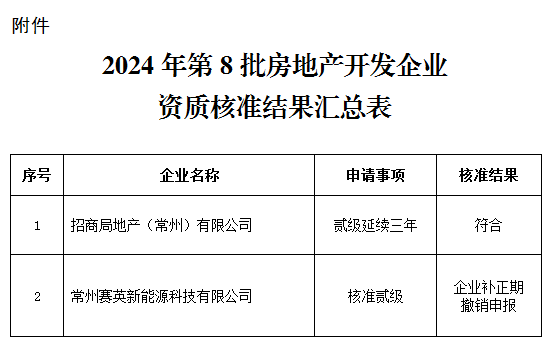 根据《中华人民共和国城市房地产管理法》《城市房地产开发经营管理条例》(国务院令第248号)和《房地产开发企业资质管理规定》(部令第54号)等法规以及有关文件规定,现将我局核准的2024年第8批房地产开发企业资质结果予以公告。