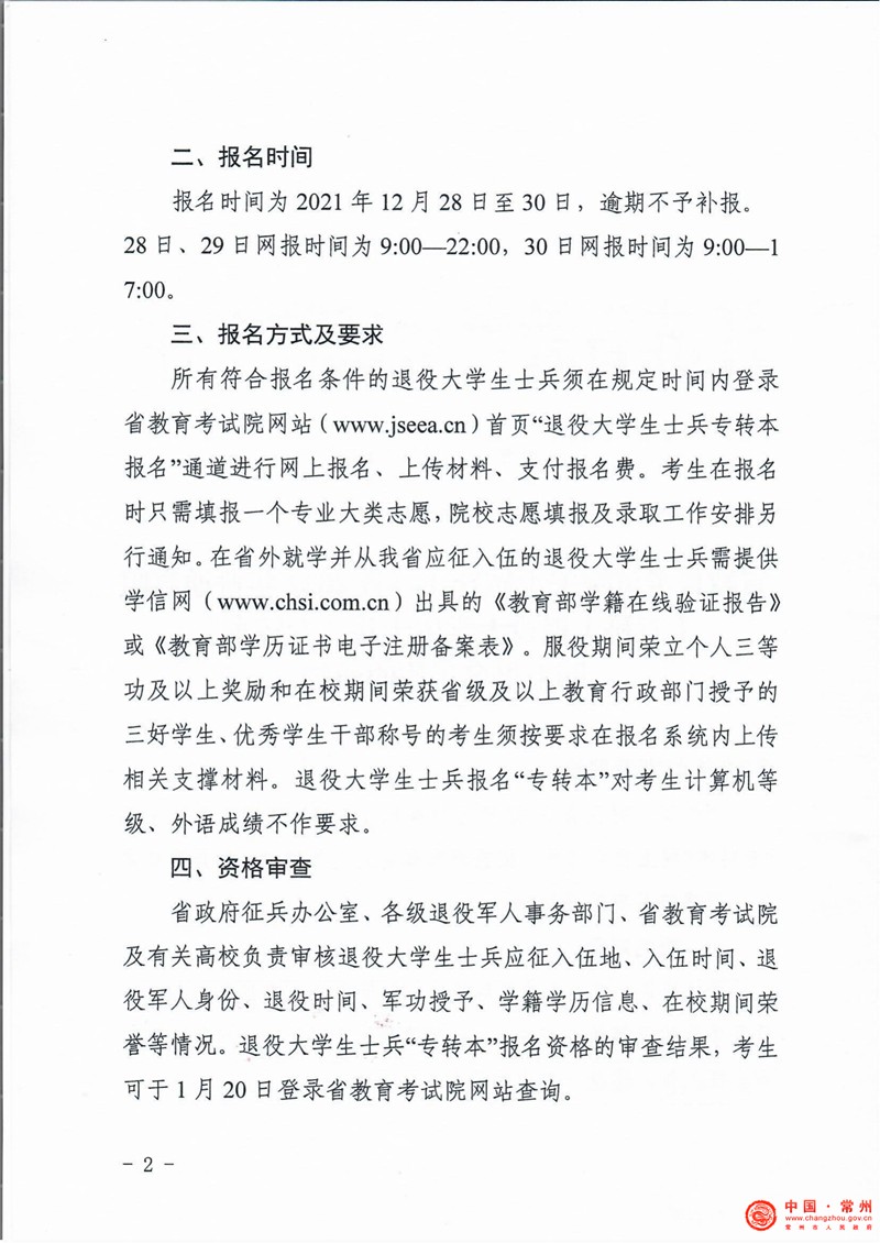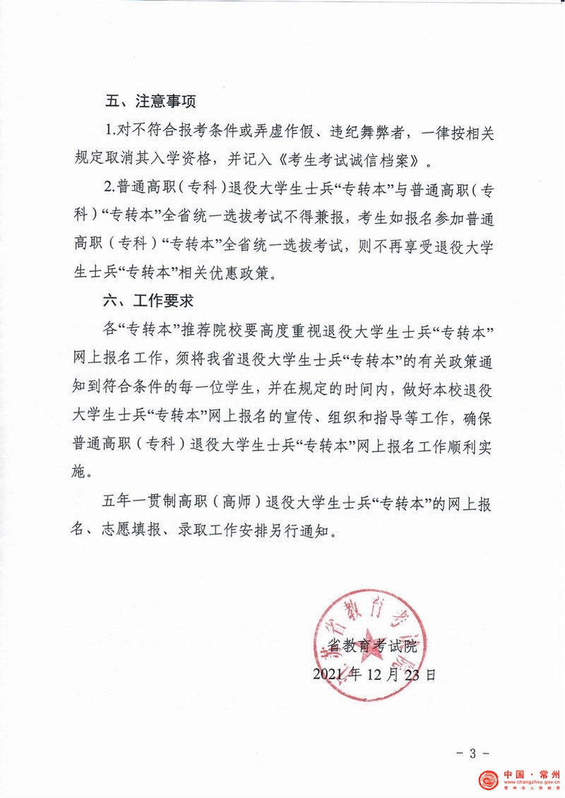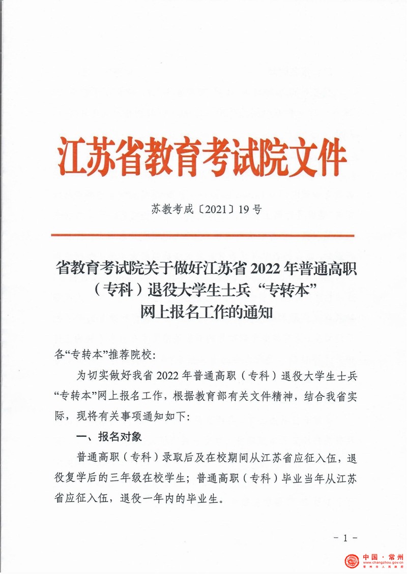 关于做好江苏省2022年普通高职(专科)退役大学生士兵“专转本”网上报名工作的通知