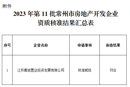 根据《中华人民共和国城市房地产管理法》《城市房地产开发经营管理条例》(国务院令第248号)和《房地产开发企业资质管理规定》(部令第54号)等法规以及有关文件规定,现将我局核准的2023年第11批房地产开发企业资质结果予以公告。