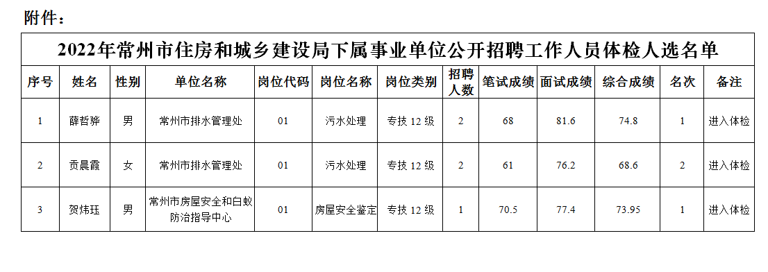 附件:2022年澳门网络十大博彩公司住房和城乡建设局下属事业单位公开招聘工作人员体检人选名单