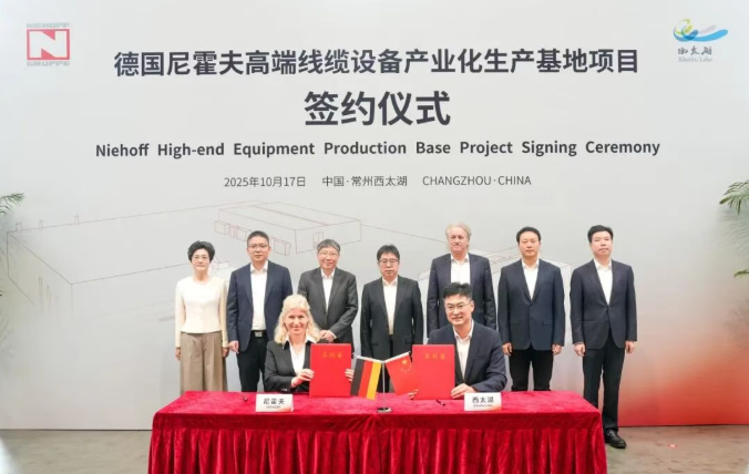 10月17日,尼霍夫机械制造(常州)有限公司与常州西太湖科技产业园管理委员会签约,将投资3000万美元建设高端线缆设备产业化生产基地项目,这也是德国尼霍夫集团在西太湖的第三次投资布局。市、区领导潘冬铃、薛晔、徐俊参加活动。