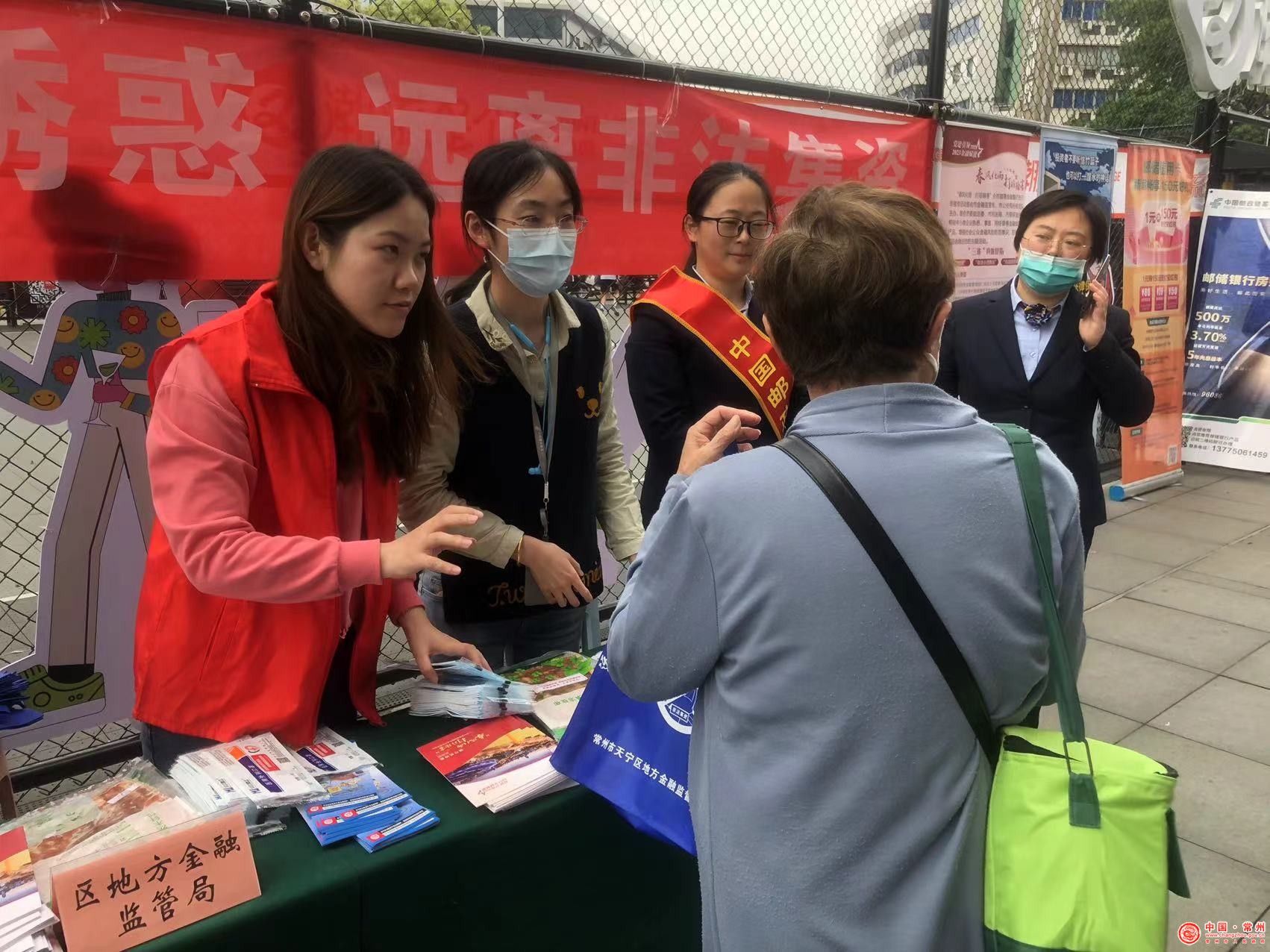 活动中,区地方金融监督管理局对普惠金融、防非知识进行了解读,同时鼓励公众积极举报三非线索;区法院、检察院、司法局、市场监管局、公安天宁分局联合开展金融领域法律法规宣传及维权法律服务,结合所办“套路贷”和非法集资案例,以案说法,向公众提示非金融机构吸收公众资金的违法性,并揭示犯罪手法提示风险;各金融机构宣传普及金融知识,介绍合法的投资、贷款渠道和理财方式,引导公众理性投资,合法理财。