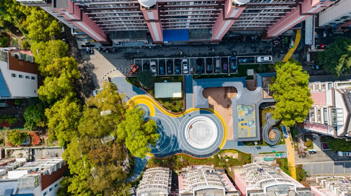 上书房社区将“海绵城市理念”融进小区建设,通过众多海绵设施实现对雨水的滞蓄、净化、缓排,从而达到雨水调蓄与美化地块景观的双重作用。依托老旧小区改造,社区在屋顶加装光伏板,为活动用房及周边电动车光伏充电桩供给零碳、清洁的“绿电”。