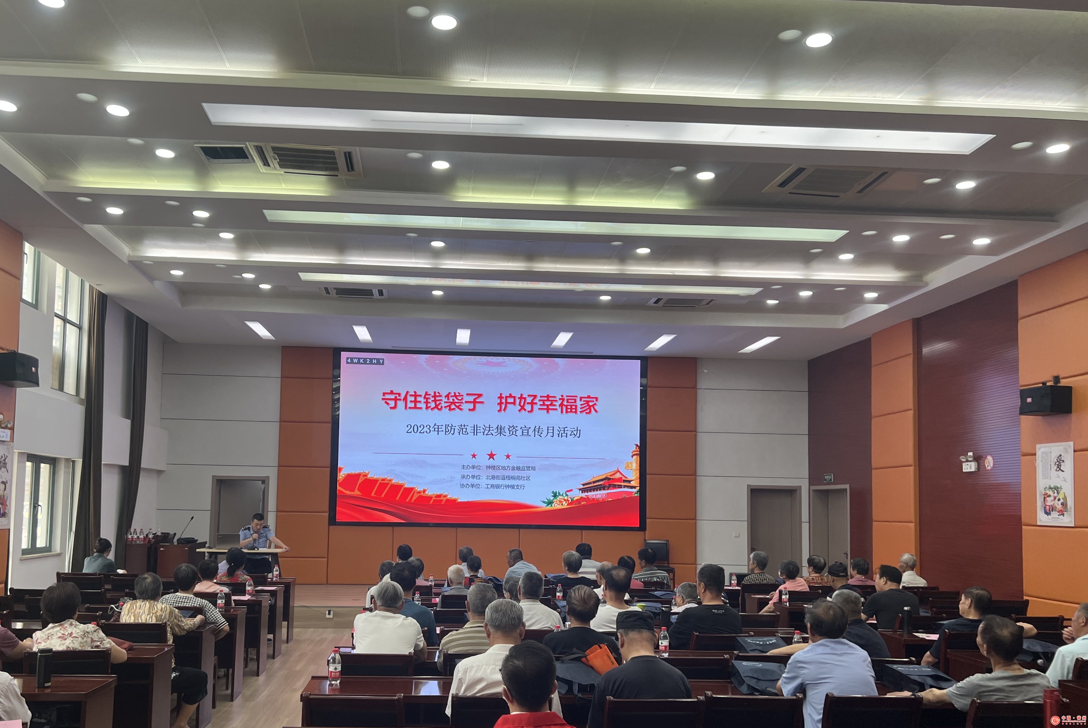 2023年6月是全国第十一个防范非法集资宣传月,为进一步加强防范非法集资宣传教育,提高广大群众的防范意识,增强风险识别能力,6月15日下午,钟楼区金融局联合区委政法委、区法院、区检察院、区公安分局、区司法局、区市场监管局、工商银行钟楼支行等单位在梧桐苑社区开展以“守住钱袋子、护好幸福家”为主题的防范非法集资宣传月活动。