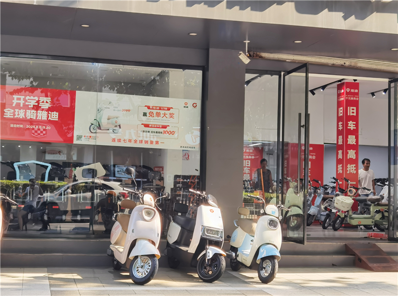 富海通信广场内多家出售或维修手机的门店均推出了以旧换新业务。店主们纷纷表示,以旧换新既符合环保理念,又能吸引更多顾客光顾,提升店铺的竞争力。“顾客只需将旧手机交给店内的维修师傅进行评估,根据评估结果即可获得相应的换新补贴,补贴金额可直接抵扣新机的购买费用。”一位店主介绍。 电动车换新:绿色出行新选择 在电动车行业,“以旧换新”的促销活动也受到了广泛关注。东横街一家颇具知名度的电动车品牌,自去年推出以旧换新活动以来,店里的生意日渐兴隆。根据活动规则,消费者可以携带自己的旧电动车,依据品牌设定的评估标准进行折价,再补足一定的差额,便能换购一辆最新型号的电动车。