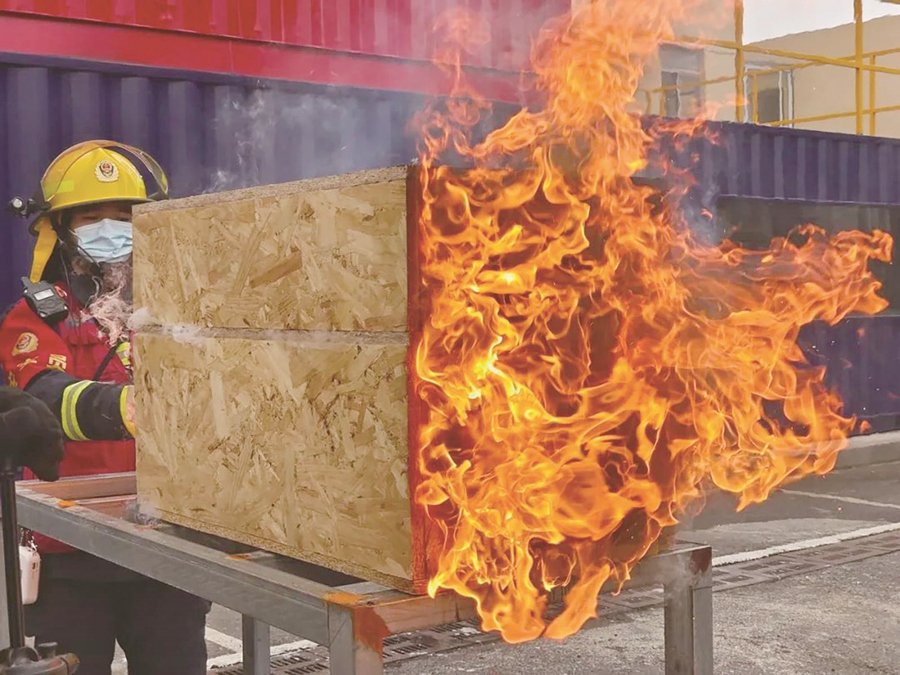 据介绍,训练时,可通过设置不燃性耐温地面、通道、箱体,以及烟热仿真条件,来模拟消防救援人员执行灭火救援任务时遭遇高温、浓烟、有毒气体、黑暗等情况,借此帮助消防救援人员开展正确使用装备、穿越各种障碍训练等;可通过开展体力承受能力、心理行为训练、通过障碍能力测试、训练以及装备性能测试,让消防救援人员在实施灭火救援的同时锻炼自我保护的能力;可通过模拟密闭空间、地下、高层等各类复杂真实火灾场景,全面提升消防救援人员火情侦察、人员搜救、寻找火源灭火等的战斗能力。