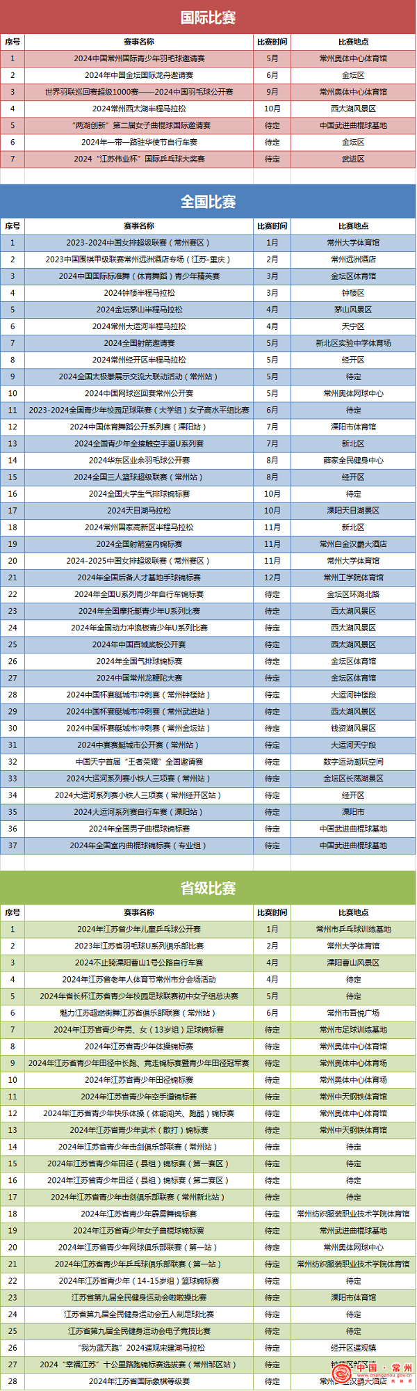 体育局:2024年常州计划举办72项省级及以上体育赛事