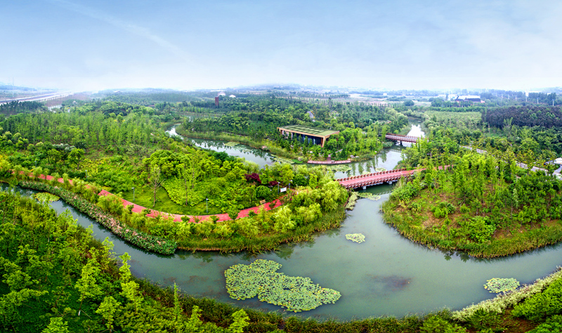 该项目在除尘降噪、固碳释氧、防洪减灾、涵养水源等方面取得了显著成效,每年可吸收二氧化硫180余吨,滞尘7000余吨;平均每天可吸收相当于100万人呼出的二氧化碳量,同时释放出相当于可供90万人吸收的氧气量;全年可吸储雨水55万立方米,是名副其实的城市绿肺、生态海绵和绿色廊道。
