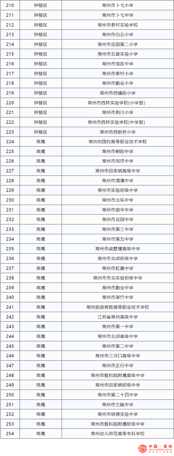 254所中小学具体名单如下: