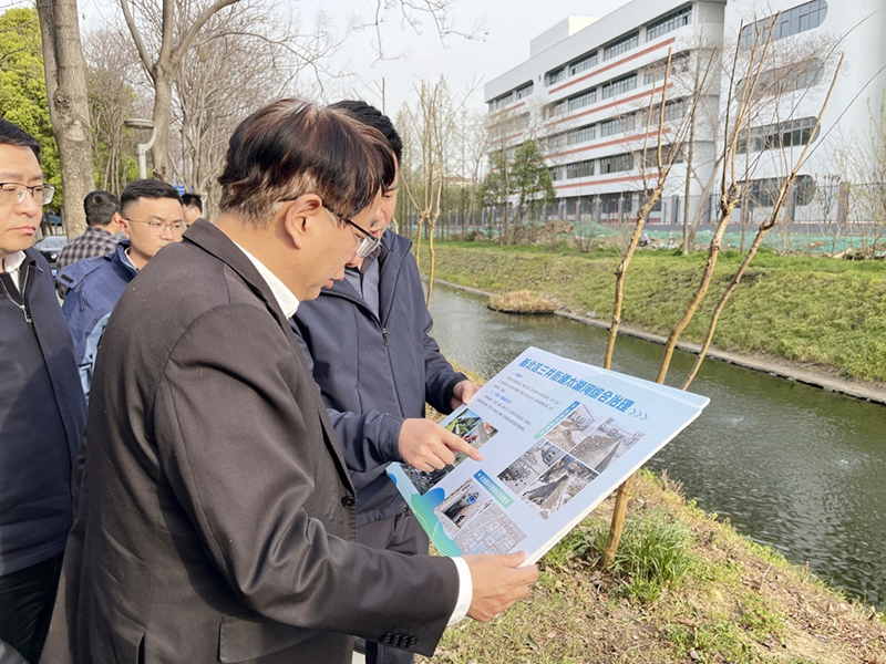 蒋鹏举一行先后查看了建新河、澡港河盛扬大桥南侧东岸隐患驳岸应急抢修工程和太湖河。建新河位于新北区春江街道,为彻底解决污水溢流问题,新北区将实施建新河(盛业路桥)截流泵站新建工程,目前已完成招标。针对澡港河盛扬大桥南侧东岸沉降问题,市水利局组织实施应急抢修,目前已完成围堰施工及周边钢板桩防护施工,工程将于汛前完工。太湖河位于新北区三井街道,2024年新北区实施太湖河(华山路—澡港河段)水质提升试点工程,通过溯源排查入河排放口、构建沉水植物—水生动物—微生物群落共生系统等措施,实现水体水质和景观双提升。