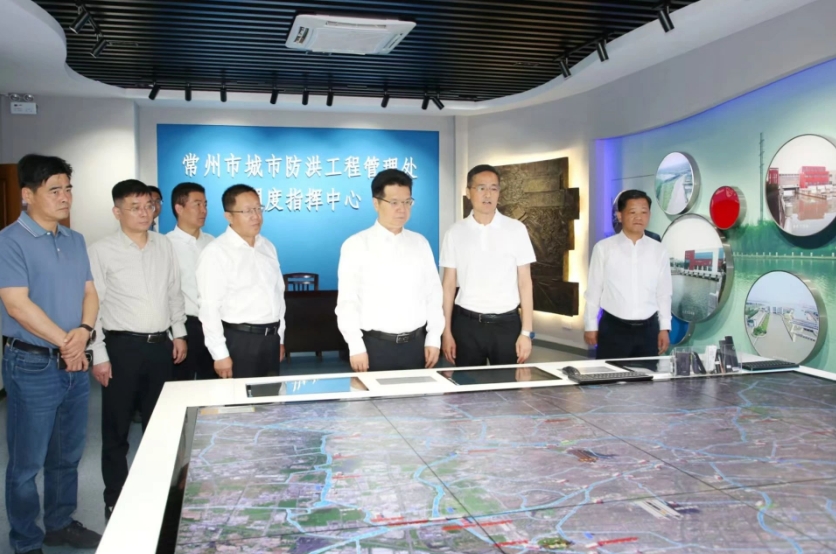在市防汛抗旱调度指挥中心,王剑锋通过城市防洪三维电子沙盘,察看了解全市水系、防洪体系以及防洪大包围工程运行等情况。横塘河北枢纽工程位于横塘河北端与北塘河交界处,具有防洪、排涝、引水兼顾水环境整治等功能。王剑锋现场察看抽水泵站,强调要密切关注雨情水情汛情变化,未雨绸缪、充分准备,保障防洪排涝安全。