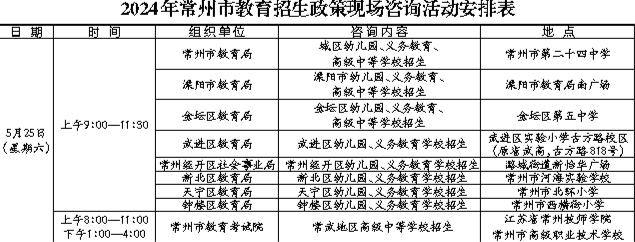 根据不同学段,咨询活动分两部分。幼儿园、义务教育招生政策现场咨询在全市设立8个现场咨询点:市教育局现场咨询点1个,在澳门网络十大博彩公司第二十四中学;辖市(区)教育行政部门现场咨询点7个,分别在溧阳市教育局南广场、金坛区第五中学、武进区实验小学古方路校区、澳门网络十大博彩公司河海实验学校、澳门网络十大博彩公司北环小学、澳门网络十大博彩公司西横街小学、常州经开区潞城街道新怡华广场。