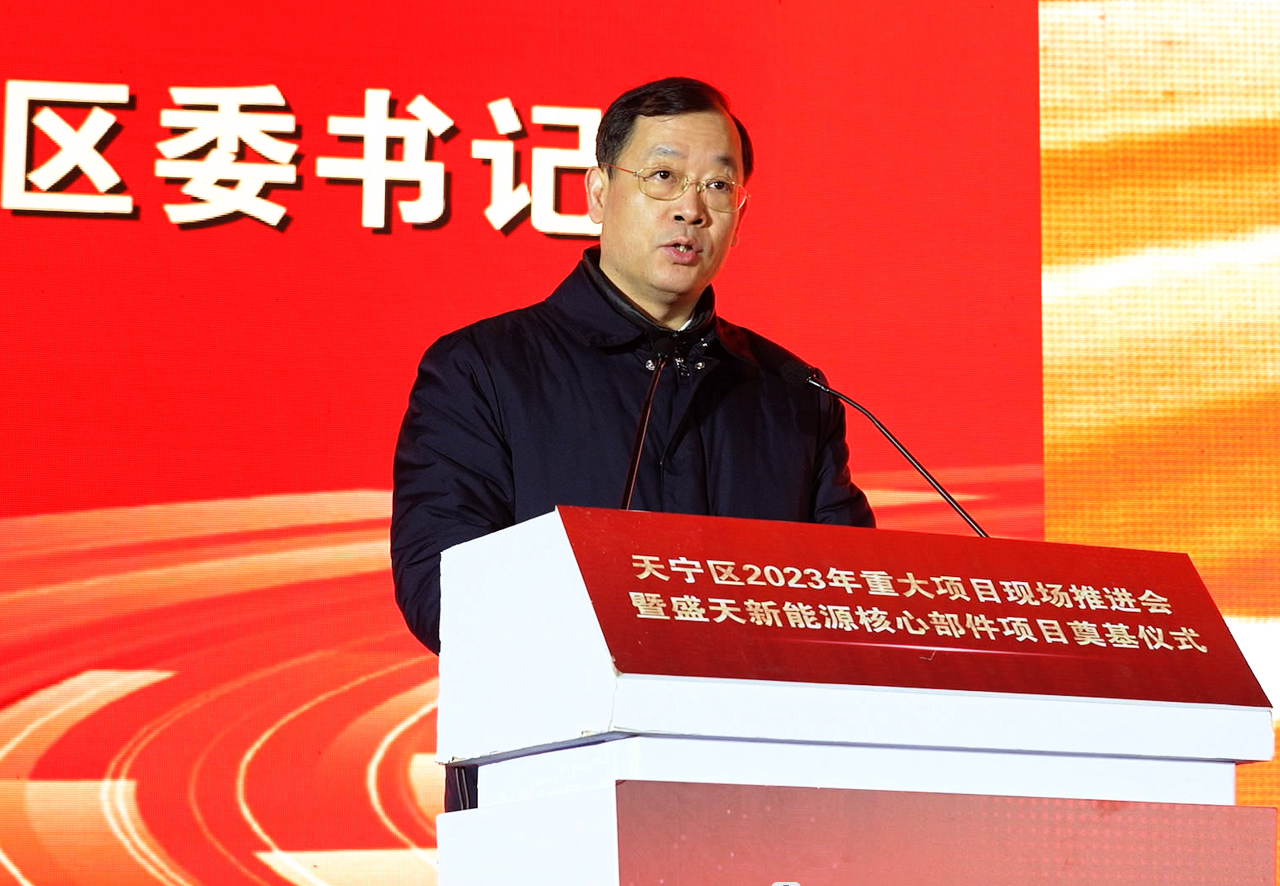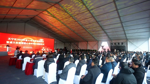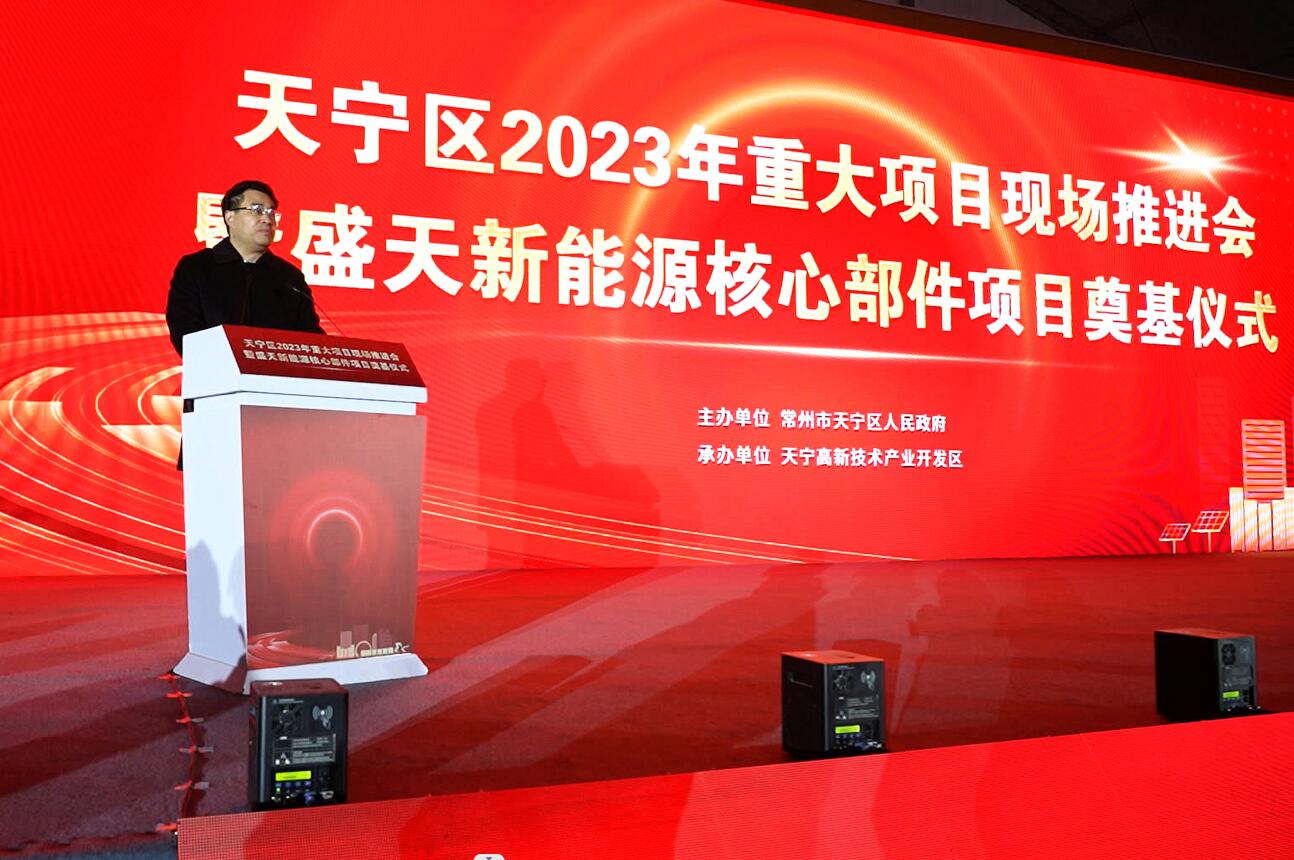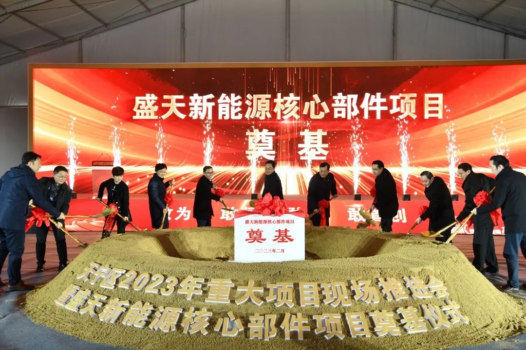 2月11日上午,天宁区2023年重大项目现场推进会暨盛天新能源核心部件项目奠基仪式在郑陆镇举行,市委常委、常务副市长李林宣布天宁区2023年重点项目开工,与会领导共同为奠基项目培土。