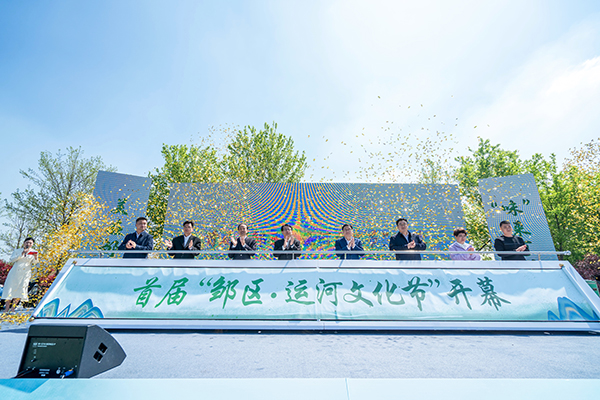 随后,蒋鹏举、陈峰、田海明、孙益锋、万建新、胡金芳、谢志诚、陆伟共同上台为活动开幕,伴随着礼花与彩带,画卷徐徐展开,首届“邹区·运河文化节”正式启动。