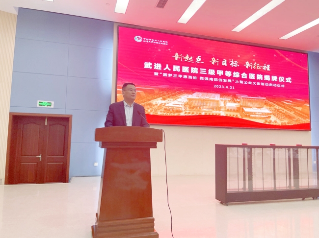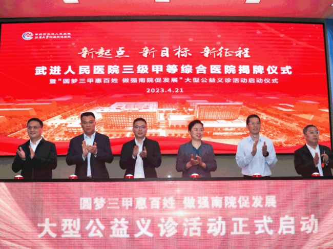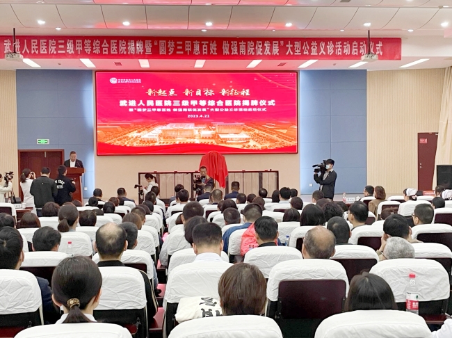 4月21日上午,常州武进人民医院三级甲等综合医院揭牌仪式在武进人民医院南院举行,“圆梦三甲惠百姓 做强南院促发展”大型公益义诊活动同步启动。区领导薛红霞、张小虎参加活动。
