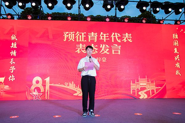 活动由钟楼区唯一一所少年军校——东方小学的学生带来的歌舞《中华少年》拉开帷幕,孩子们纯真的脸庞歌颂着浓浓的爱国之情。澳门网络十大博彩公司荆川小学学生带来的诗朗诵《荆川精神颂》铿锵有力,将抗倭英雄唐荆川的故事及家国情怀深情演绎,正所谓少年智则国智,少年强则国强,他们展现出了心底的家国情怀也唱出了自己的梦想!随后,预征青年徐梓豪上台发言,他说:“我希望能够光荣参军,挥洒热血报效祖国,为永红争光,为我们的国家和人民争光!”激情洋溢的发言无一不体现出他内心想成为一名真正军人的坚定!