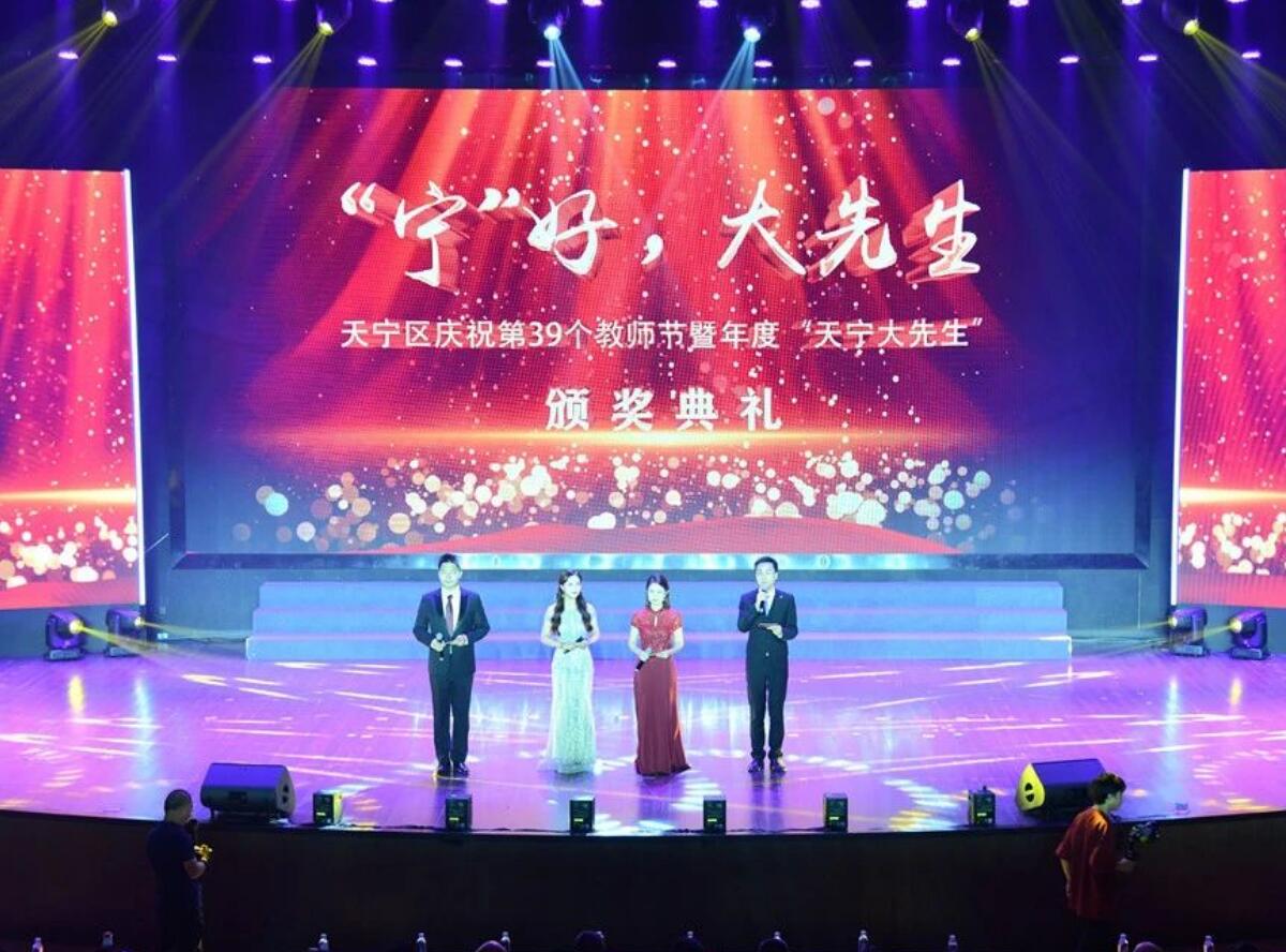 9月8日上午,天宁区第39个教师节庆祝活动暨天宁区首届“天宁大先生”颁奖典礼在二十四中天宁分校举行。市政协副主席、市教育局局长完利梅,市委教育工委书记司马双龙,区四套班子领导出席。