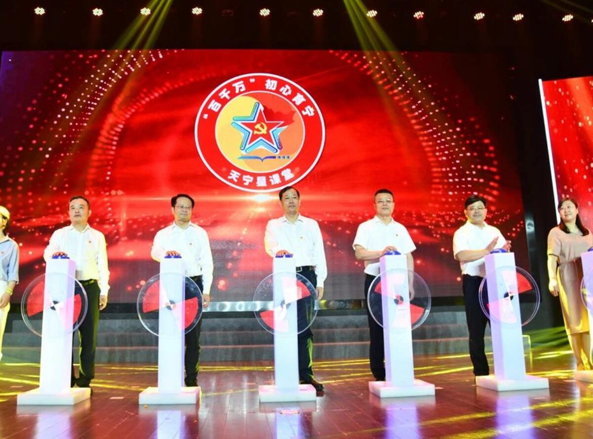 为充分发挥基层党组织的战斗堡垒和党员教师的先锋模范作用,现场,“百千万”初心育“宁”星课堂党建品牌正式发布。“天宁星课堂”是区委教育工委于2020年创建的党建品牌,分为线上“红色教育星课堂”和线下“快乐志愿星课堂”。“百千万”初心育“宁”星课堂党建项目旨在进一步深化“天宁星课堂”党建品牌内涵,坚持开门办思政课,充分调动全社会力量和资源,协同推进思政育人。通过“1+N”系列举措,“1”即一个初心育“宁”星课堂主题教育基地, “N”即“百千万”行动,将“天宁星课堂”转化为思政大课堂,提升育人新效能。