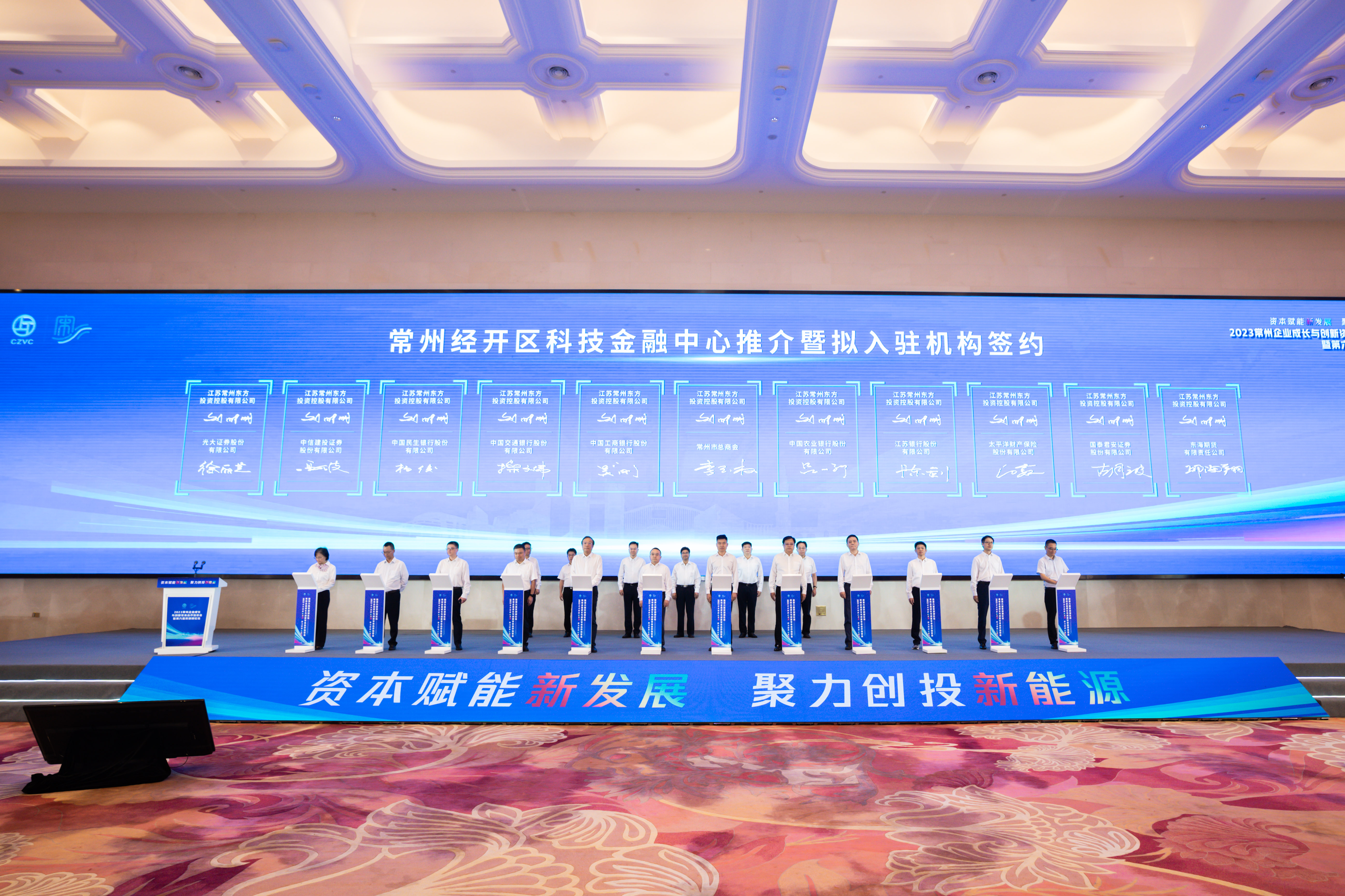 活动过程中以影片形式展示了常州龙城金谷发展成果。近年来,常州聚力打造雨林式金融创新生态圈,做大做强基金产业,龙城金谷业已建成全周期基金产业集聚高地,以“资本链”激活“产业链”,为常州高质量发展注入“金”动能。截至今年6月,龙城金谷累计集聚各类机构1134家,累计认缴注册资本近1500亿元。活动现场,常州经开区科技金融中心作为长三角产业科技与金融服务平台,围绕为各类主体创新创业科技赋能、资本运作、服务加持进行了推介,首批11家金融机构完成了入驻签约。随着资本市场“常州板块”的崛起,越来越多的常州本土科创企业获得资本市场的青睐,产业与资本双向奔赴、聚势共赢,活动当日中国-比利时基金、武岳峰科创和常州大运河基金等8家知名投资机构与常州本土企业进行投资签约,签约总规模达7.35亿元。