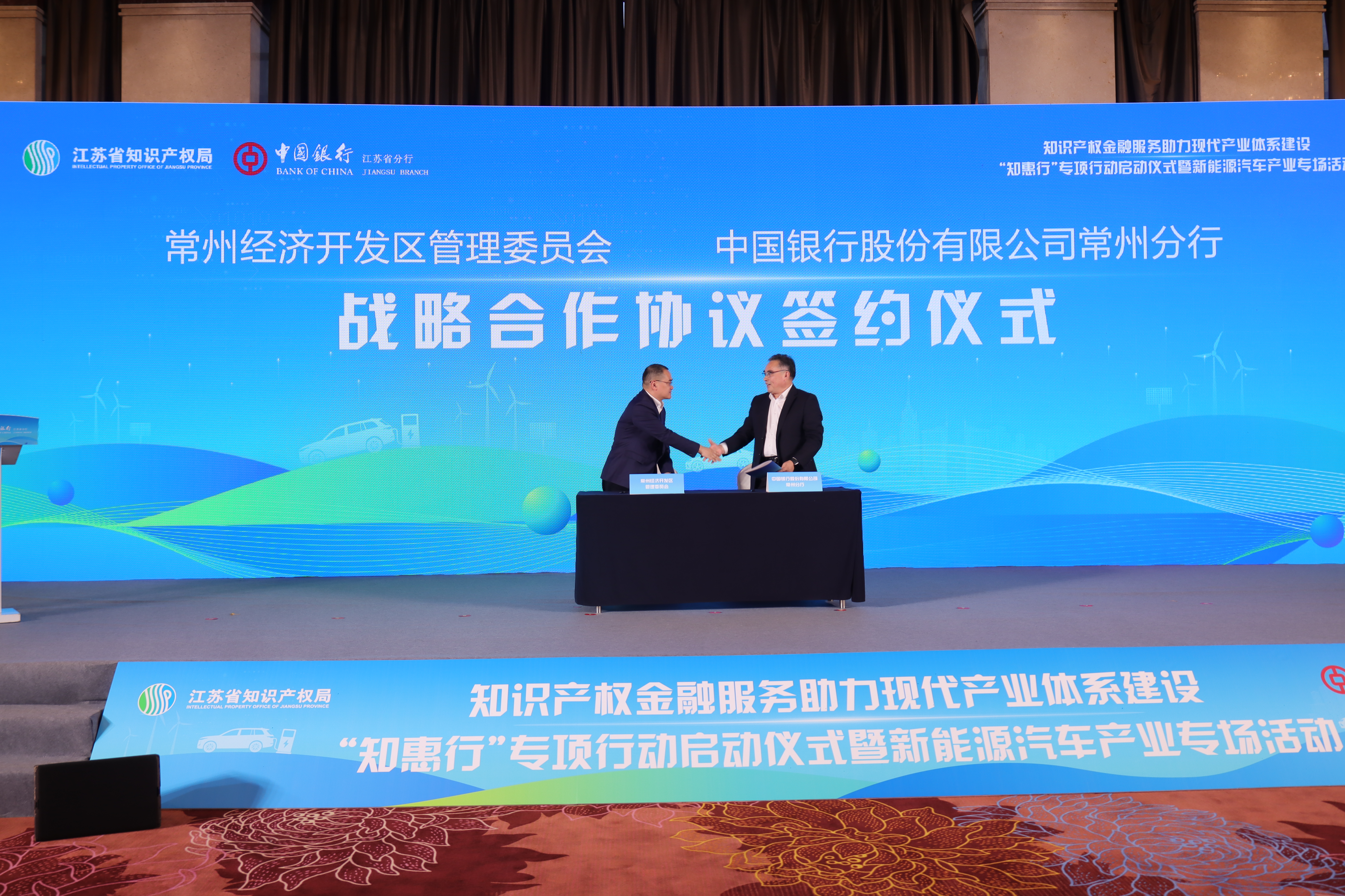 为认真贯彻省委、省政府关于建设现代化产业体系的决策部署,全面落实《国务院办公厅关于印发〈专利转化运用专项行动方案(2023—2025年)〉的通知》有关要求,按照《国家知识产权局 中国银行股份有限公司关于开展知识产权金融服务助力新能源汽车产业“知惠行”专项活动的通知》的工作部署,江苏省知识产权局、中国银行江苏省分行于11月27日在常州举办知识产权金融服务助力现代产业体系建设“知惠行”专项行动启动仪式暨新能源汽车产业专场活动。
