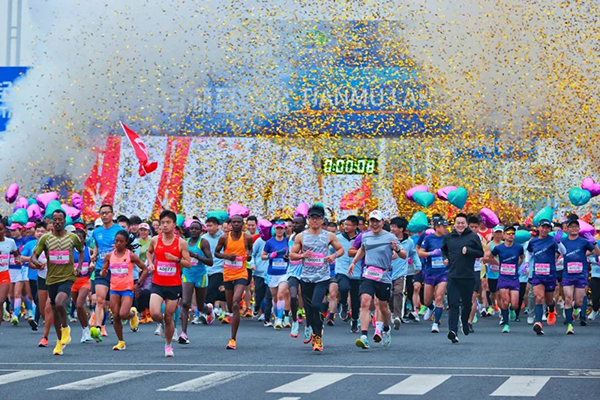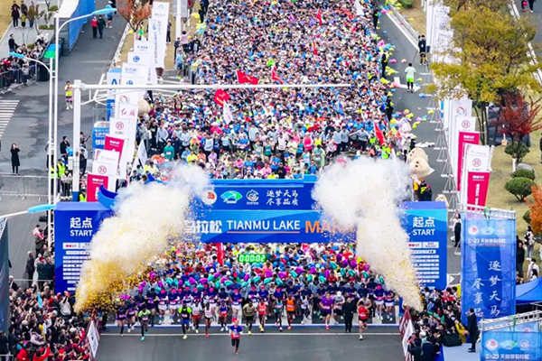 11月26日上午7:30,2023天目湖马拉松在南京航空航天大学天目湖校区西门鸣枪开赛。一万余名来自国内外的跑步爱好者齐聚天目湖畔,共享这场体育盛会。