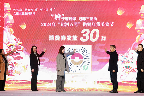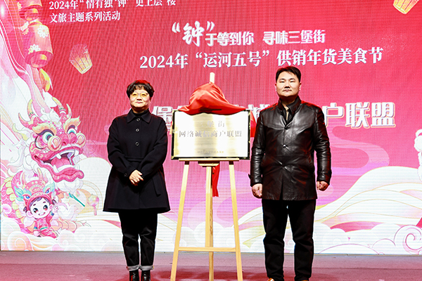 1月12日晚,“钟”于等到你 寻味三堡街—2024年“运河五号”供销年货美食节开幕式成功举办。本次供销年货美食节活动是2024年“情有独‘钟’ 更上层‘楼’”钟楼文商旅主题系列首场活动,活动时间为12日-14日,以挖掘和展示钟楼区特色美食文化为核心,着力提升区域知名度、美誉度和影响力,满足春节群众消费需求,营造欢乐祥和的新年氛围。