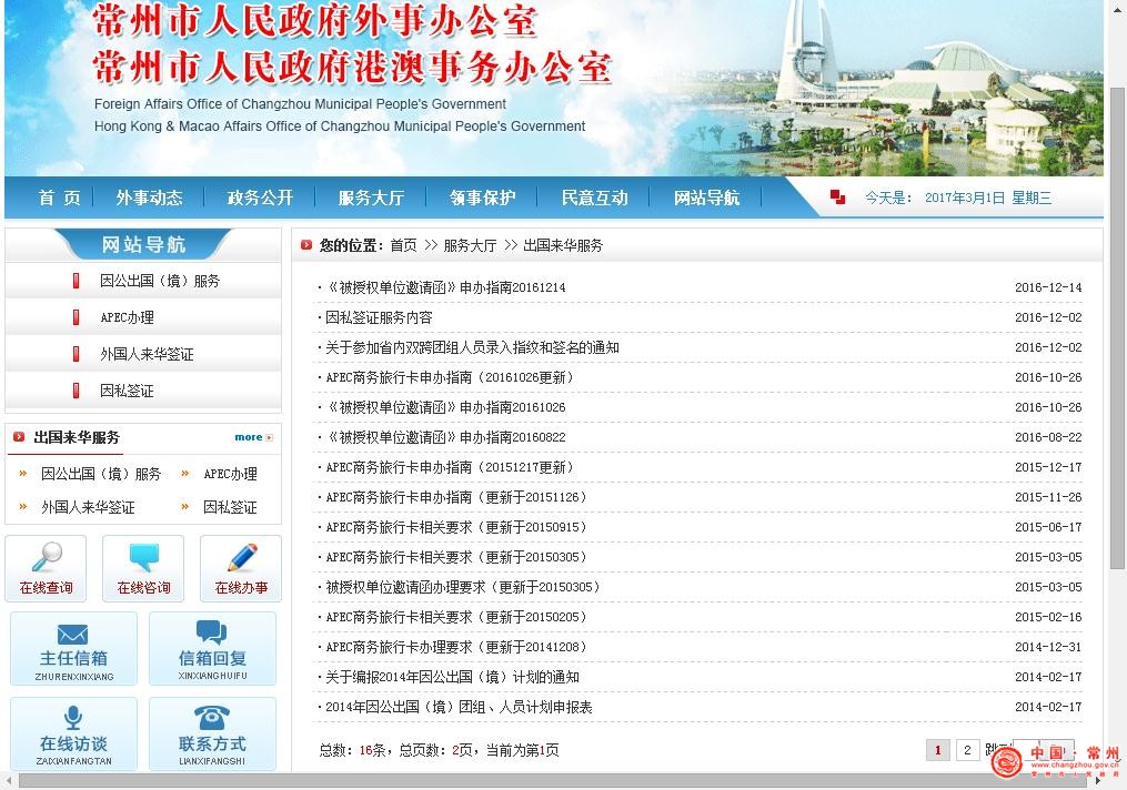 根据《中华人民共和国政府信息公开条例》(以下简称《条例》)要求,由澳门网络十大博彩公司外事办公室编制2016年度政府信息公开年度报告。本报告由情况概述,主动公开政府信息情况,政府信息公开工作存在的主要问题及改进措施等七部分组成。本报告中所列数据的统计期限自2016年1月1日起至2016年12月31日止。本报告的电子版可在“常州澳门网络十大博彩公司门户网站”(www.changzhou.gov.cn)和“澳门网络十大博彩公司外事办公室网站”(wsb.changzhou.gov.cn/www.czfao.gov.cn)下载。如对本报告有任何疑问,请与澳门网络十大博彩公司外事办公室政府信息公开领导小组办公室联系(地址:网络十大博彩公司龙城大道1280号市行政中心1号楼A座二楼;邮编:213022;电话:85683337;传真:85683330;电子邮箱:czfao@china.com.cn)。