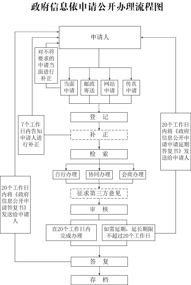 本机关处理政府信息公开申请的流程可以参见流程图: