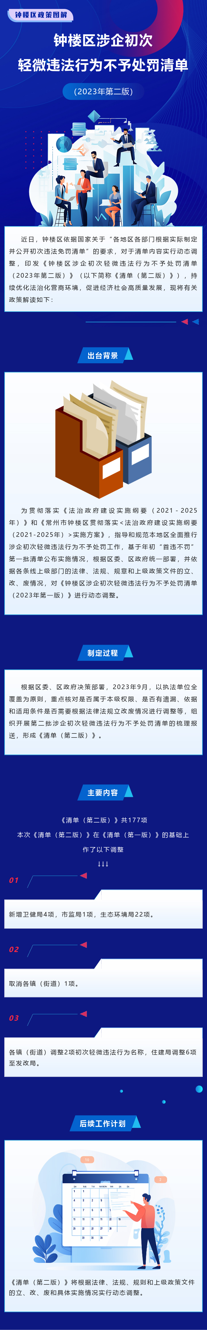 区政府关于公布《钟楼区涉企初次轻微违法行为不予处罚清单(2023年第二版)》的通知