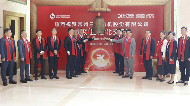 9月8日上午,常州三协电机股份有限公司登陆北京证券交易所,股票简称三协电机,股票代码920100。截至目前,全市境内外上市公司累计达105家。三协电机股份有限公司董事长盛祎、市委书记王剑锋出席上市仪式。