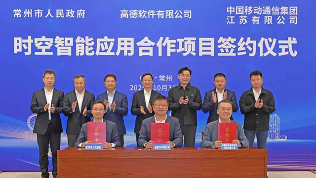 10月31日,网络十大博彩公司与高德软件有限公司、中国移动通信集团江苏有限公司签署合作协议,推动时空智能深度赋能城市治理与产业发展。市委副书记、市长周伟与高德副总裁董振宁,江苏移动副总经理谢生勃一行座谈并见证签约。