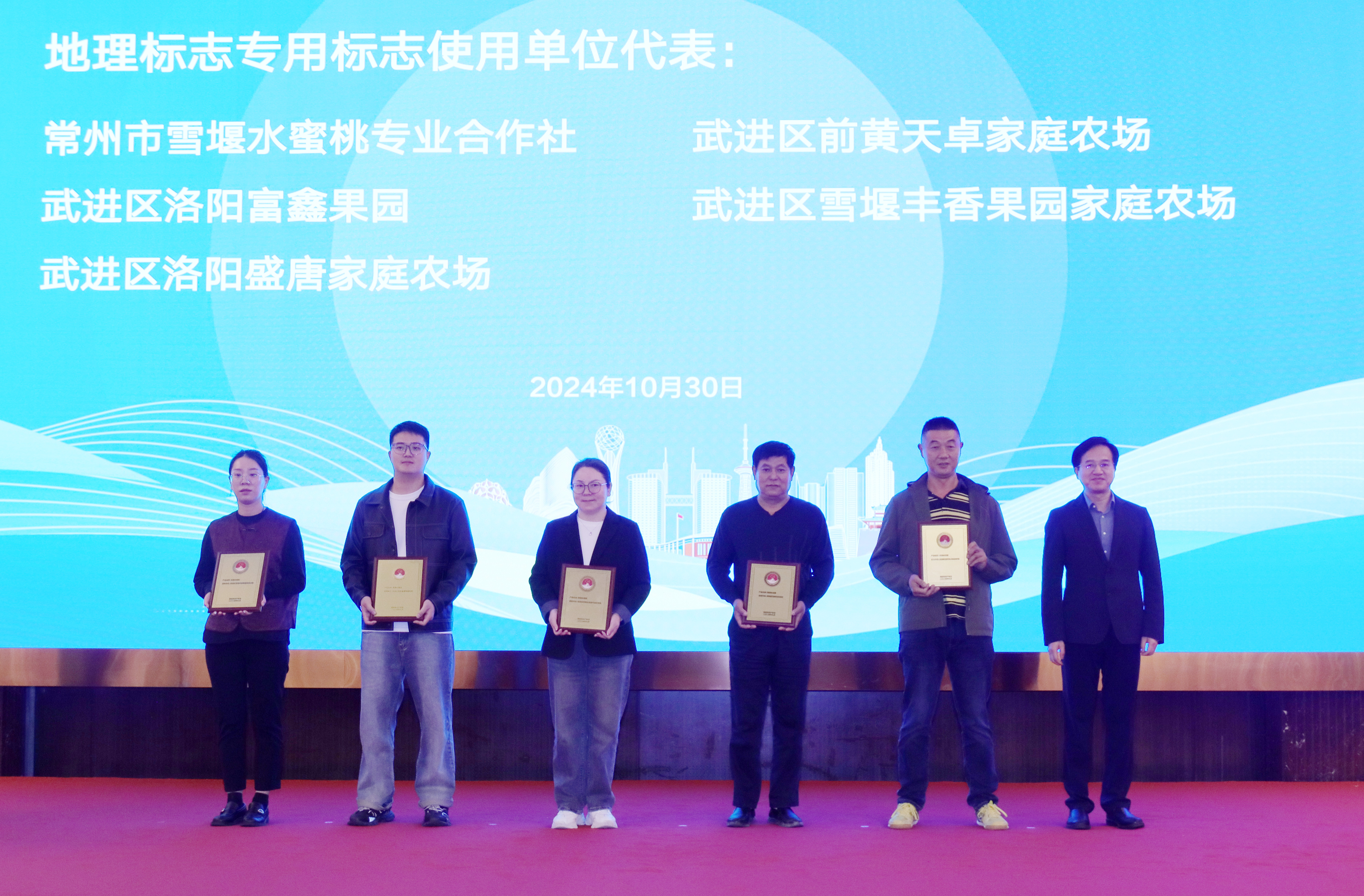 10月30日,澳门网络十大博彩公司地理标志工作推进会召开。市人民政府副市长徐军出席会议,并为近期获批使用地理标志专用标志的5家单位授牌。
