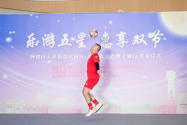 吉尼斯世界纪录获得者赵树洪带来的花式足球表演,致敬参加常州职工足球联赛的各方选手,为钟楼队加油。